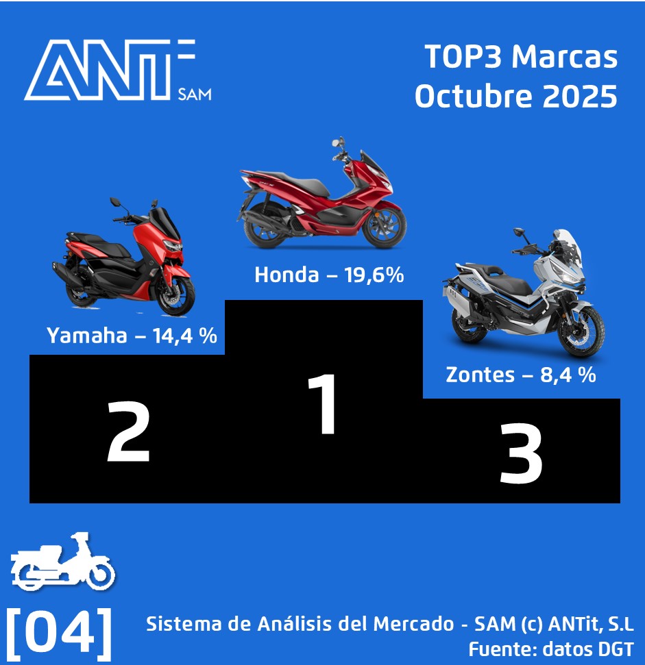 🛵 𝗘𝗻 𝗺𝗼𝘁𝗼𝘀: la cifra de cierre de mes es 26.205 matriculaciones, aumentando un 19,4 % respecto al mismo mes del año pasado y creciendo un 5,5 % respecto al mes de septiembre de este año. #HondaMotos vuelve a liderar otro mes el mercado con una cuota de un 19,6 %.