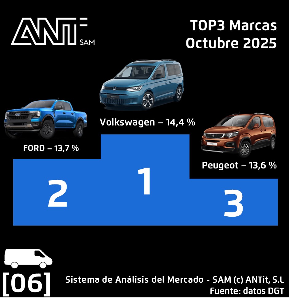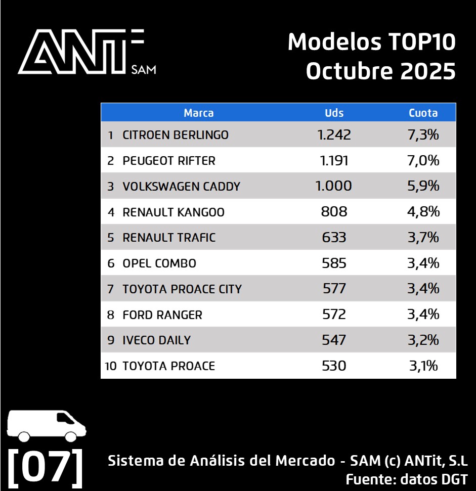 🚐 𝗘𝗻 𝘃𝗲𝗵í𝗰𝘂𝗹𝗼 𝗰𝗼𝗺𝗲𝗿𝗰𝗶𝗮𝗹 𝗹𝗶𝗴𝗲𝗿𝗼: con 17.008 matriculaciones se cierra el mes en este mercado, lo que supone un incremento de un 9,0 % respecto a octubre de 2024. Y un aumento del 10,7 % en comparación al pasado mes de septeimbre. Volkswagen Vehículos Comerciales España con una cuota del 14,4% es líder del mercado.