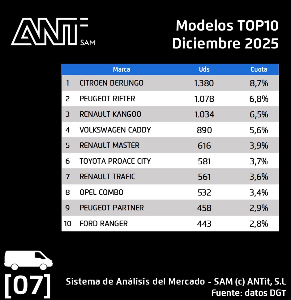 🚐 𝗘𝗻 𝘃𝗲𝗵í𝗰𝘂𝗹𝗼 𝗰𝗼𝗺𝗲𝗿𝗰𝗶𝗮𝗹 𝗹𝗶𝗴𝗲𝗿𝗼: se cierra el mes con una cifra de 15.810 matriculaciones, lo que significa un crecimiento de un 7,6% respecto al mismo mes en 2024, respecto al mes de noviembre de 2025 este mercado crece un 5,0%. Volkswagen Group España Distribución lidera el mercado este mes con una cuota de un 14.4%.