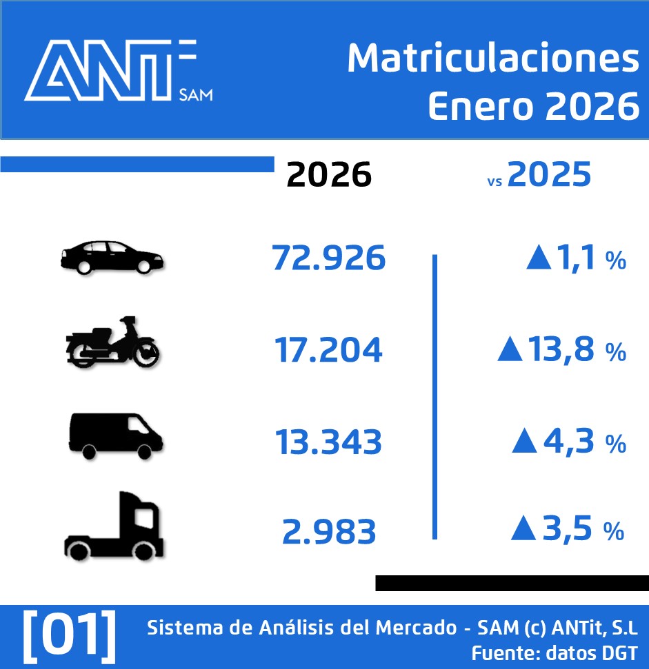 𝐄𝐥 𝐦𝐞𝐫𝐜𝐚𝐝𝐨 𝐝𝐞 𝐚𝐮𝐭𝐨𝐦𝐨𝐜𝐢ó𝐧 𝐦𝐚𝐧𝐭𝐢𝐞𝐧𝐞 𝐞𝐥 𝐫𝐢𝐭𝐦𝐨 𝐝𝐞 𝐜𝐫𝐞𝐜𝐢𝐦𝐢𝐞𝐧𝐭𝐨 𝐝𝐞𝐥 𝐚ñ𝐨 𝐚𝐧𝐭𝐞𝐫𝐢𝐨𝐫. 𝐀𝐫𝐫𝐚𝐧𝐜𝐚 𝟐𝟎𝟐𝟔 𝐜𝐨𝐧 𝐮𝐧 𝐥𝐢𝐠𝐞𝐫𝐨 𝐜𝐫𝐞𝐜𝐢𝐦𝐢𝐞𝐧𝐭𝐨 𝐞𝐧 𝐞𝐥 𝐧ú𝐦𝐞𝐫𝐨 𝐝𝐞 𝐦𝐚𝐭𝐫𝐢𝐜𝐮𝐥𝐚𝐜𝐢𝐨𝐧𝐞𝐬. En nuestra infografía podréis ver el podio del mes en todos los mercados y el TOP10 de modelos además de las matriculaciones globales del mes de enero. 🚗 𝗘𝗻 𝘁𝘂𝗿𝗶𝘀𝗺𝗼𝘀 + 𝗧𝗧: […]