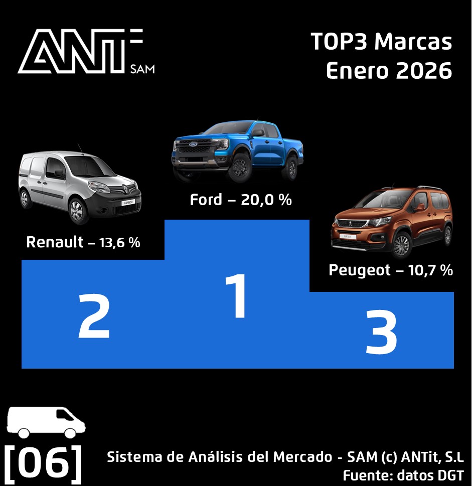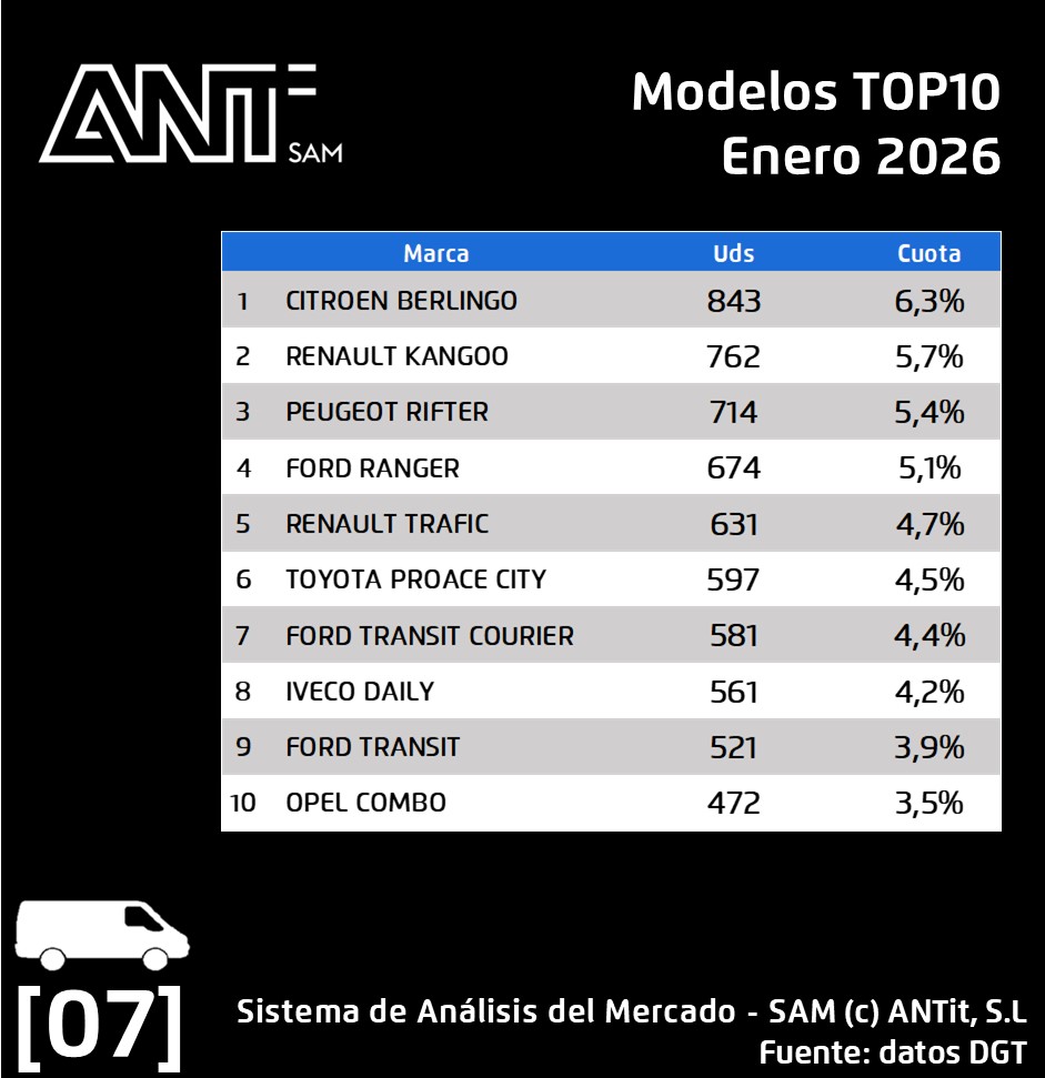 🚐 𝗘𝗻 𝘃𝗲𝗵í𝗰𝘂𝗹𝗼 𝗰𝗼𝗺𝗲𝗿𝗰𝗶𝗮𝗹 𝗹𝗶𝗴𝗲𝗿𝗼: con 13.343 matriculaciones se cierra el mes en este mercado, lo que supone un incremento de un 4,3 % respecto a enero de 2025. Ford Motor Company con una cuota del 20,1 % es líder del mercado.